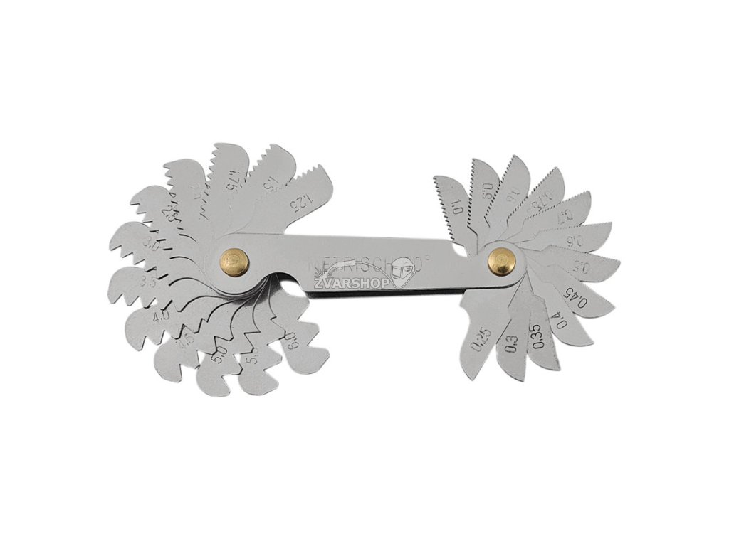 Určená pre pomerové meranie metrických závitov se stúpaním 0,25 - 6,0 mm a uhlom profilu 60`, 24 listov
