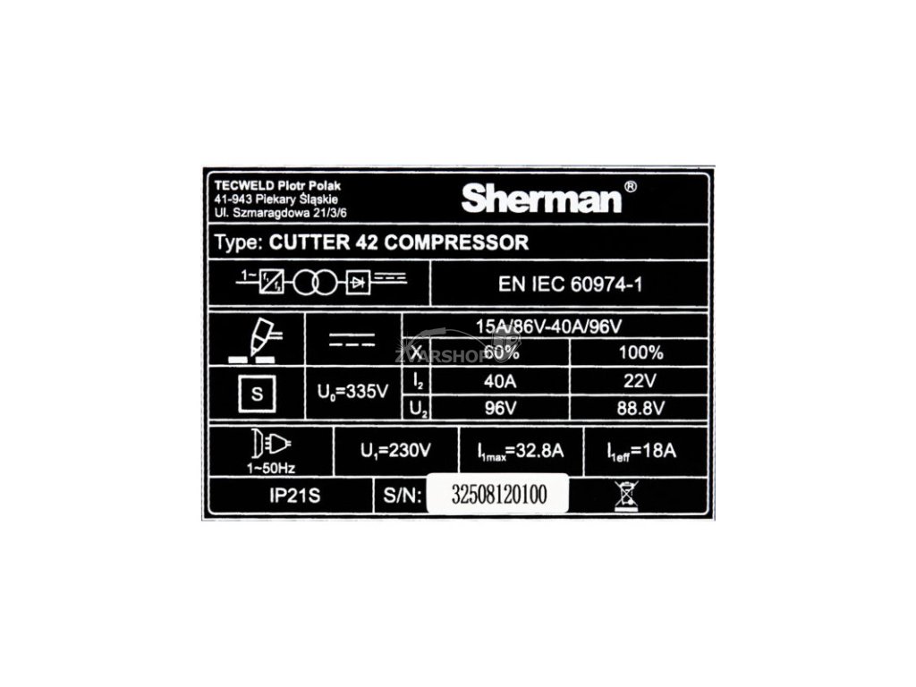 - Plazmová rezačka Sherman CUTTER 42 COMPRESSOR