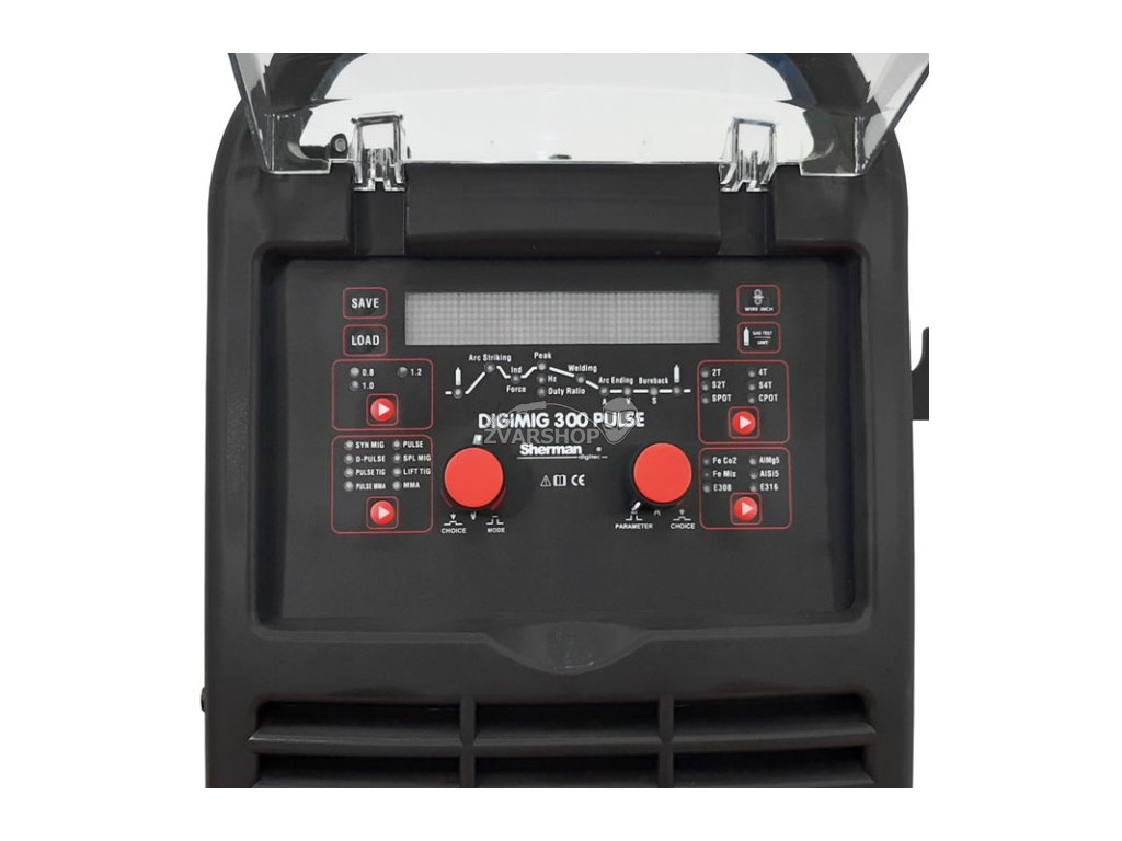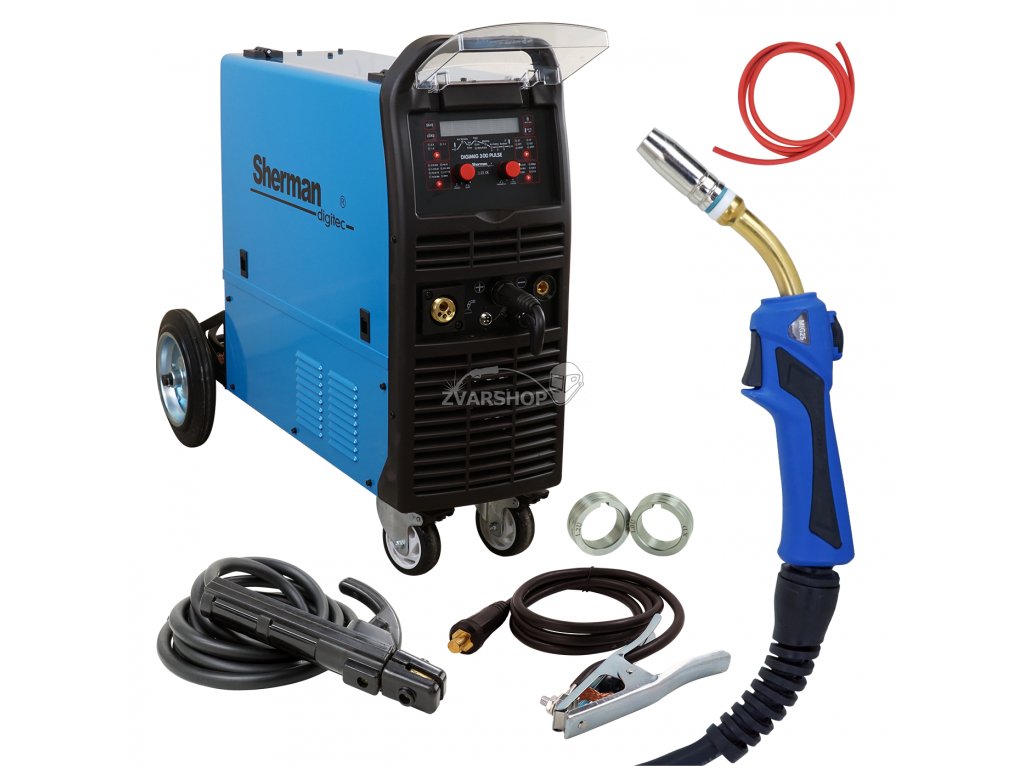 Synergická zváračka Sherman DIGIMIG 300 Pulse je inovatívne zariadenie pre ručné zváranie ocele a farebných kovov metódami MIG/MAG, MMA (potiahnutá elektróda) a Lift TIG. Možno ho tiež použiť na zváranie tenkých (do 3 mm) pozinkovaných plechov spájkovaním.