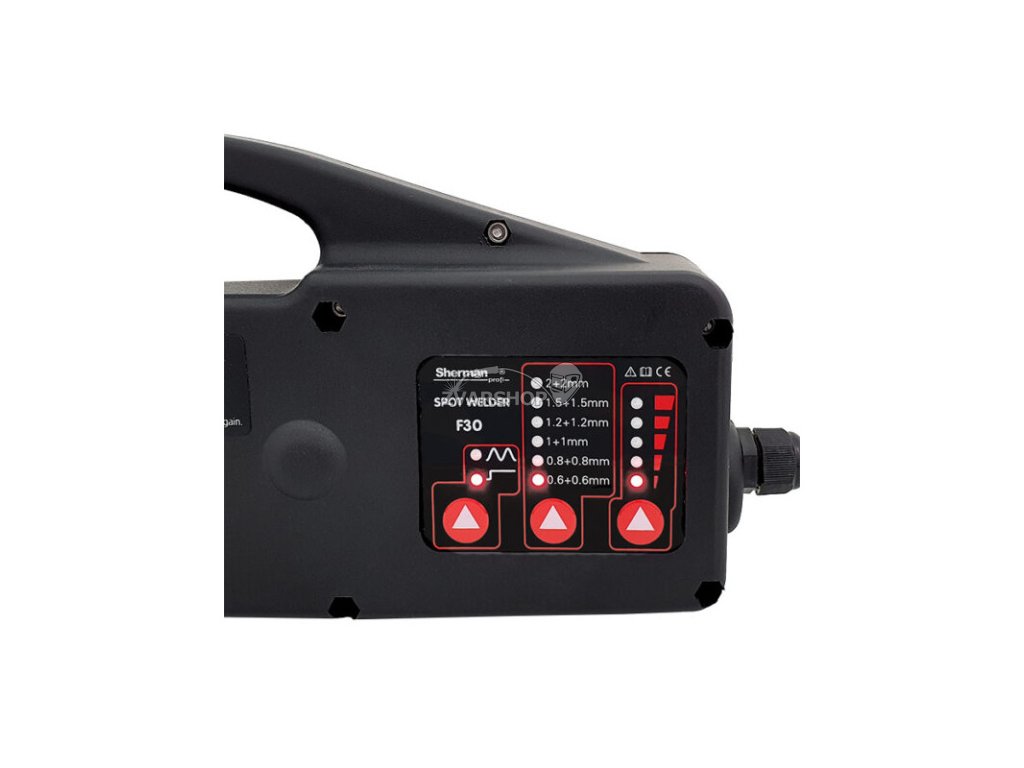 Ručná zváračka F30 je určená na obojstranné bodové zváranie plechov. Je široko používaný v autodielňach, remeselníckych a servisných prevádzkach na opravárenské práce a príležitostné výrobné práce. Umožňuje zváranie nízkouhlíkových, nerezových a pozinkovaných oceľových plechov do hrúbky 2 mm. Je vybavený dvoma prevádzkovými režimami: kontinuálnym a pulzným prúdom.