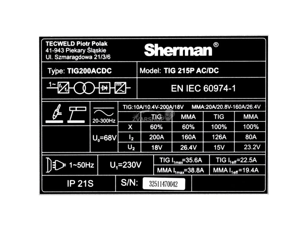 SHERMAN TIG 215P AC/DC